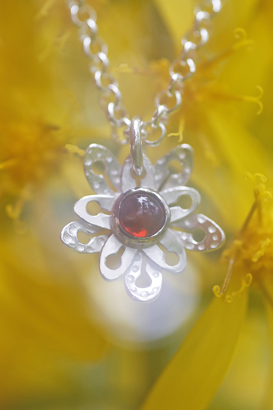 268 e (sis. alv 25,5 %) 4 cm Kultahippu ja granaatti hopeaketju 55 cm