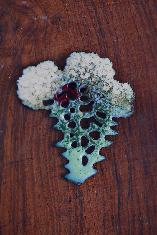 54 e (sis. alv 25,5 %) Koko n. 5 cm emaloitu kupari, messinkineula jokainen väritys on uniikki